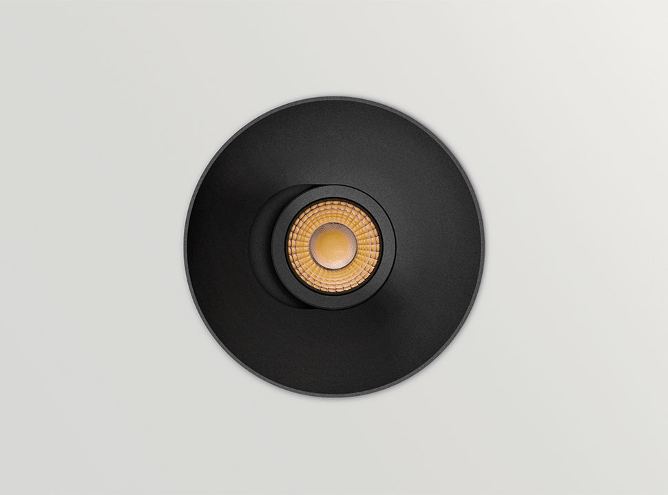 Zenit está disponible en acabados blanco y negro texturizado y en dos temperaturas de color de tonalidad cálida/neutra (2700K y 3000K), perfectas para entornos confortables y residenciales. Adicionalmente, en su versión directa e indirecta, el downlight puede ofrecer un cambio de cilindro en cuatro colores diferentes (blanco, negro, cromo y oro cepillado).
