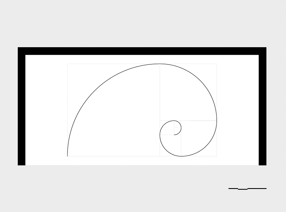 Inspirada en la proporción áurea y en la espiral de Fibonacci —geometrías presentes en numerosos procesos de crecimiento en la naturaleza—, la obra transforma el espacio en una experiencia sensorial donde la luz se percibe como una presencia que estructura el ambiente, a pesar de que su fuente permanezca oculta.