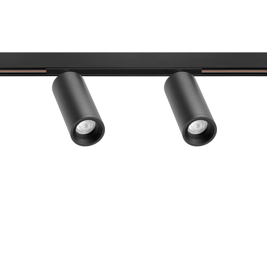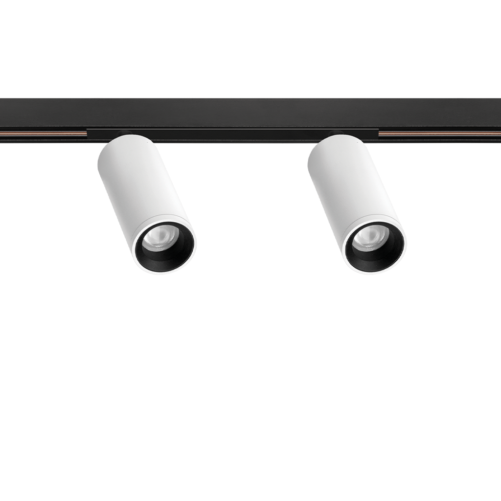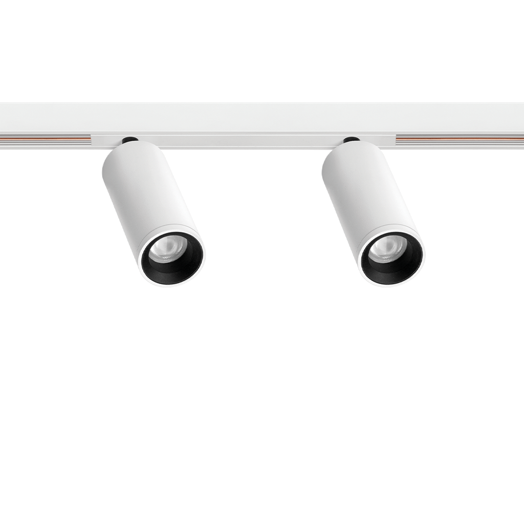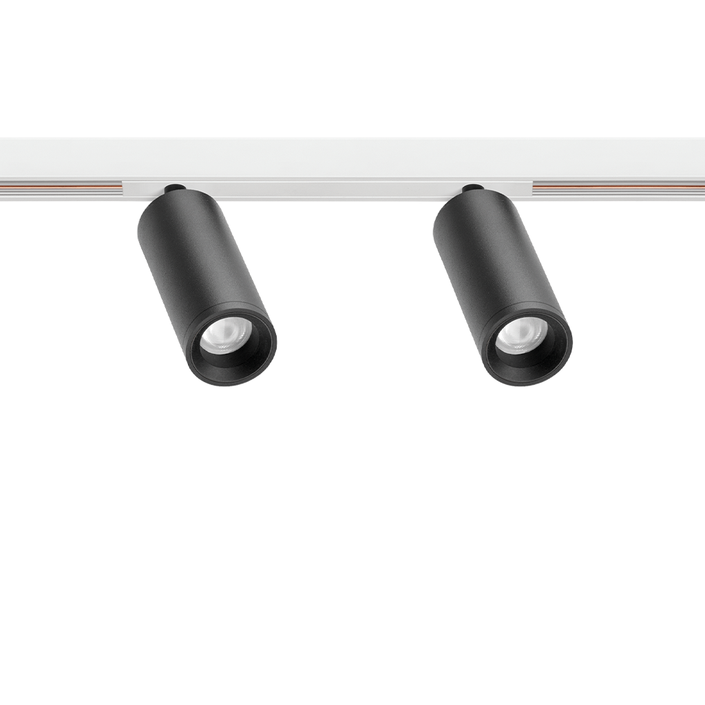 Fit 48V is a spotlight for low voltage tracklight applications, available in different models (∅50, ∅35, ∅35 Double, ∅27, ∅27 Double, ∅20 und ∅20 Double). With its cylindrical geometry and essential forms, it stands out for its minimalistic design and functionality, as it can be oriented in any direction. The black perimeter around its mouth and its honeycomb accessory highlight its anti-glare vocation.